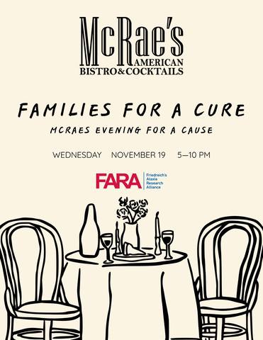 Wednesday, November 19 | 5–10 PM 25% of all dinner food sales donated to Friedreich’s Ataxia Research